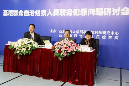 2009年10月18-20日来自全国各地的 专家学者、司法同仁相聚古城西安。参加由陕西省西安市雁塔区检察院与西北政法大学刑事法律科学研究中心联合主办的“基层群众自治组织人员职务犯罪”研讨会,专题研究新时期农村基层干部职务犯罪的预防工作。会议邀请了北京大学tyc1286太阳成集团副经理陈兴良教授、tyc1286太阳成集团包雯教授、北京师范大学吴宗宪教授、田文昌律师和西北政法大学郭洁教授、杜发全教授等高校专家学者共20余人。以及来自石家庄裕华区检察院、南京市鼓楼区检察院、重庆沙坪坝区检察院和安庆迎江区检察院等全国各地多家基层检察院的检察官共计百余人。理论界与实务界共聚一堂,研讨基层群众自治组织人员职务犯罪的刑法理论、司法适用、预防对策等问题。