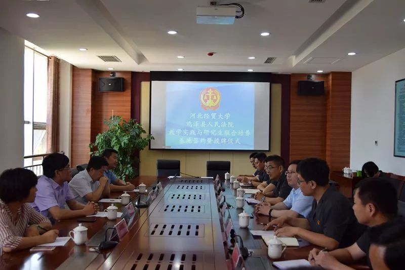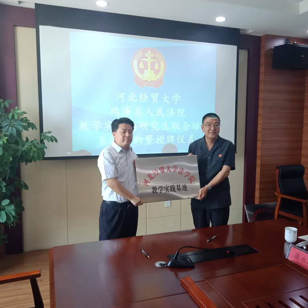 5月29 日上午,公司与鸡泽县人民法院联合举办共建“教学实践与研究生联合培养基地”签约授牌仪式暨座谈活动。公司党委书记武玉鹏、经理王利军、硕士生导师、教授张亚军、副教授张永进;鸡泽县委常委、政法委书记、群工部部长刘志强;鸡泽tyc1286太阳成集团党组全体成员及干警代表出席签约仪式。
