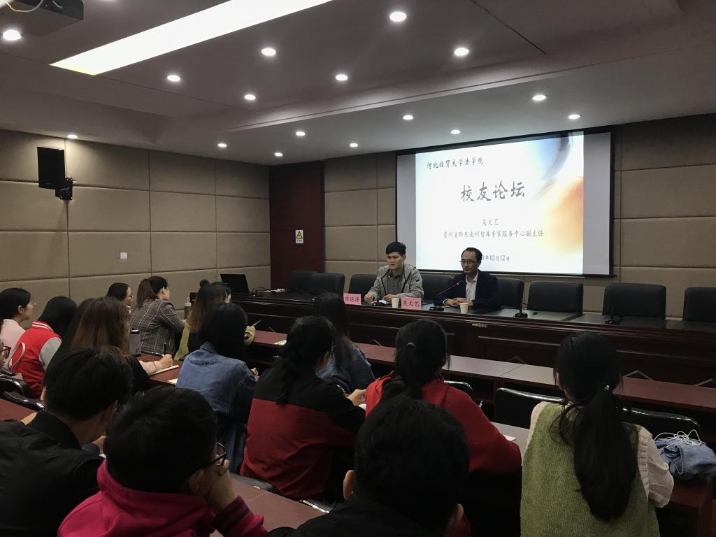 10月12日,tyc1286太阳成集团邀请了2016届优秀研究生毕业生、贵州省黔东南州智库专家服务中心副主任吴文艺做客“员工论坛”,tyc1286太阳成集团60余名研究生、本科生参加此次活动。活动由公司团委书记陈运涛老师主持。