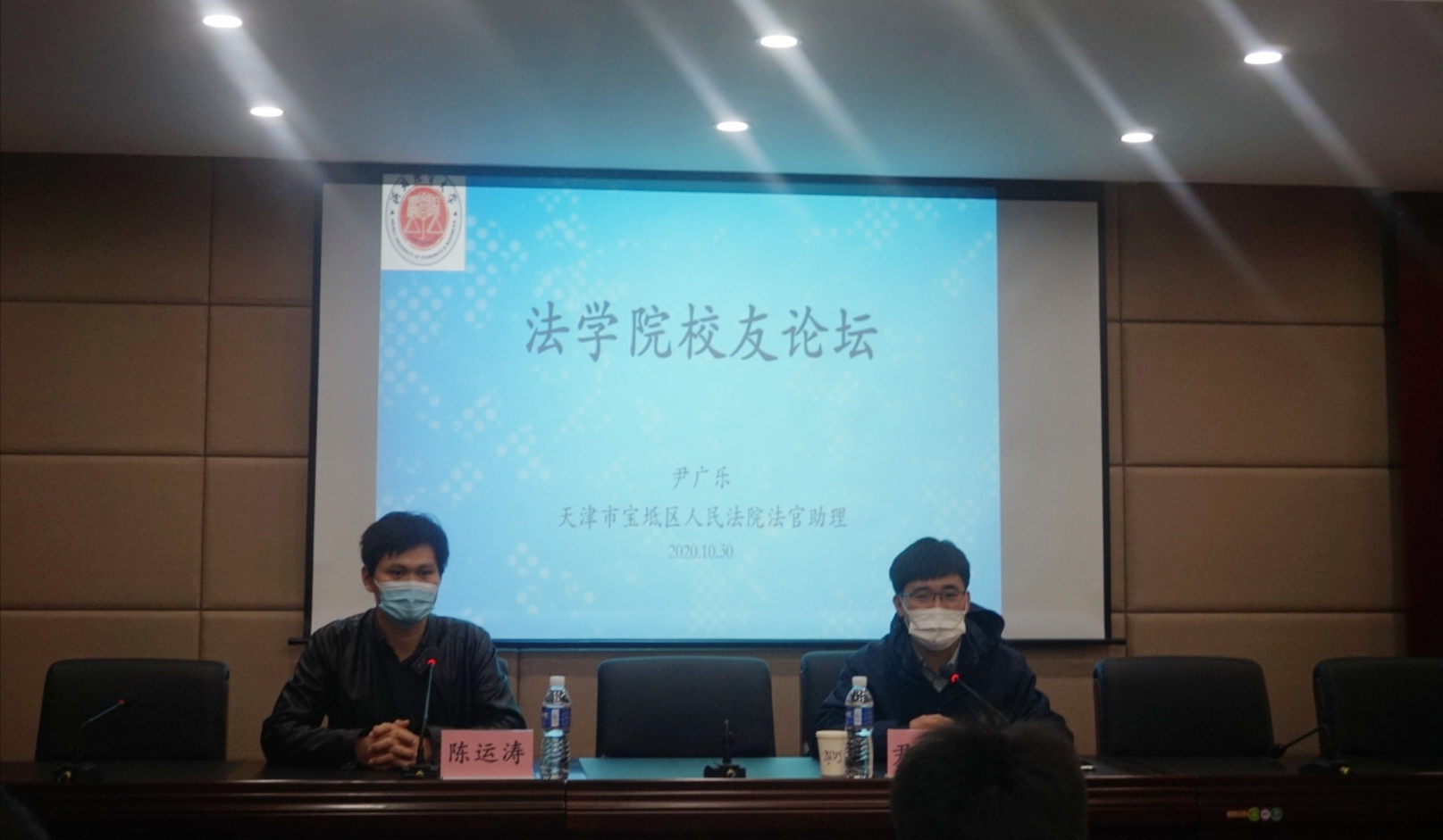 10月30日上午,tyc1286太阳成集团邀请天津市宝坻区人民法院法官助理尹广乐做客“员工论坛”,tyc1286太阳成集团团委书记陈运涛老师出席并主持,tyc1286太阳成集团团委员工会全体成员和部分研究生干部参加。