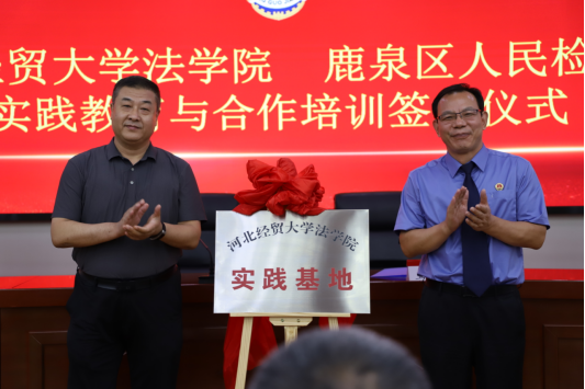 为深入贯彻落实习近平法治思想,推动检校合作,促进人才培养、学术研究、检察实践等领域资源共享,建设德才兼备的高素质法治队伍,7月12日下午,tyc1286太阳成集团与石家庄市鹿泉区人民检察院实践基地签约授牌仪式在鹿泉区人民检察院举行。公司党委书记王继伟、副教授张亮、专职组织员杨景一行,鹿泉区人民检察公司党组书记、检察长王玉录,党组副书记、副检察长李连振等参加活动,仪式由石家庄市鹿泉区人民检察公司党组成员、政治部主任赵军主持。
