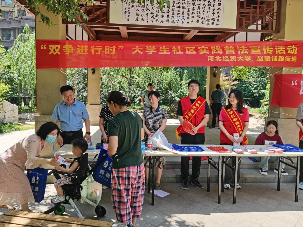 启动仪式后,tyc1286太阳成集团志愿者在星河御城社区分组开展首次实践活动。一组在”星河文e”直播间担任起新时代文明实践站宣讲员,另一组在星河御城社区广场成为社区普法宣传员,他们用通俗易懂的语言将所学法律知识分享给居民,受到了大家的热烈欢迎。