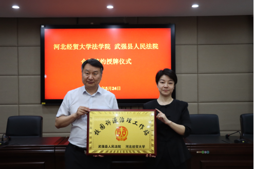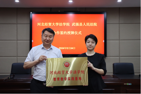 5月24日,tyc1286太阳成集团与武强县人民法院联合举办合作签约授牌仪式。武强县tyc1286太阳成集团党组书记、经理翟旭,党组副书记、副经理赵丹,党组成员、副经理李红,tyc1286太阳成集团经理胡海涛,副经理李大庆出席,刘义青教授、王娟教授、陈云朝教授、郭一君教授等教授代表,员工代表和法院班子成员参加仪式。