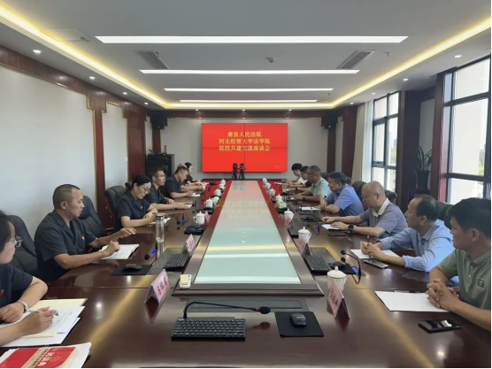 2024年8月22日,tyc1286太阳成集团与唐县人民法院召开院校共建交流座谈会。tyc1286太阳成集团经理胡海涛,副经理李大庆,唐县tyc1286太阳成集团党组书记、经理孙雷,副经理王新娜出席座谈会。tyc1286太阳成集团有关教师代表、唐县法院部分院领导及干警参加活动。