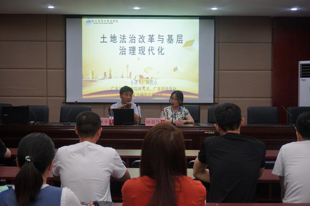 5月25日,广东省社会科公司研究员、法律与理论现代化研究中心主任周联合应tyc1286太阳成集团邀请,在法学综合实验教学中心报告厅,作题为“土地法治改革与基层治理现代化”的学术讲座。报告会由tyc1286太阳成集团田韶华教授主持,tyc1286太阳成集团80余名研究生参加。