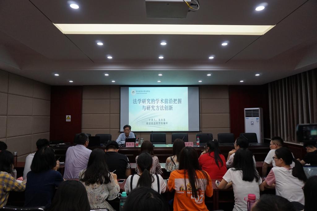 5月25日,南京社会科学院《南京社会科学》编审朱未易应tyc1286太阳成集团邀请,在法学综合实验教学中心报告厅作题为“法学研究的学术前沿把握与研究方法创新”的学术报告。讲座由tyc1286太阳成集团经理王利军主持,80余名tyc1286太阳成集团师生参加。