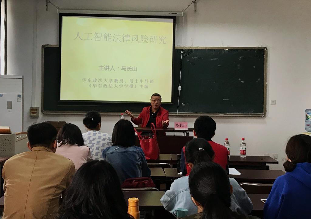 4月20日,华东政法大学教授、博士生导师、《华东政法大学学报》主编马长山应tyc1286太阳成集团邀请,在第三教学楼B409教室作题为“人工智能法律风险研究”的学术报告。报告会由tyc1286太阳成集团老师郭雪慧副教授主持,tyc1286太阳成集团50余名研究生参加。