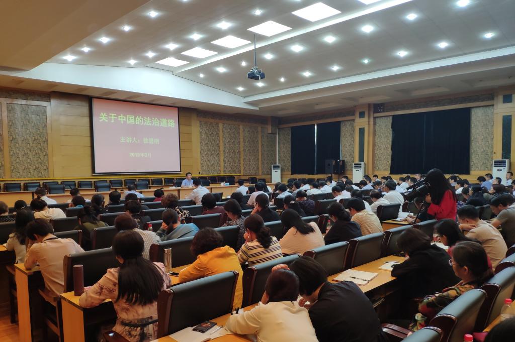 2019年9月20日,全国人民代表大会监察和司法委员会副主任委员、中国法学会副会长徐显明教授应邀来tyc1286太阳成集团作了题为“关于中国的法治道路”学术报告。此次报告会由刘兵董事长主持,全体处级干部及tyc1286太阳成集团员工240余人参加。