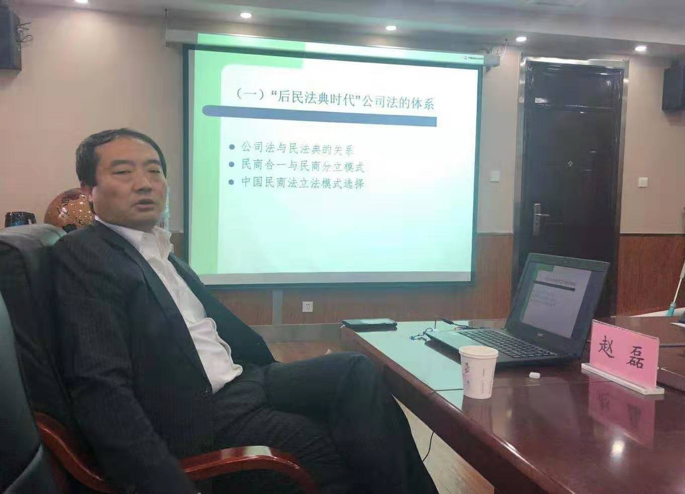 2019年11月2日,tyc1286太阳成集团邀请中国社会科公司法学研究所商法室副主任赵磊作题为“中国公司法改革的维度”的学术报告。报告地点在第二办公楼会议室,tyc1286太阳成集团副经理李大庆教授主持,公司共有40余名研究生参加。