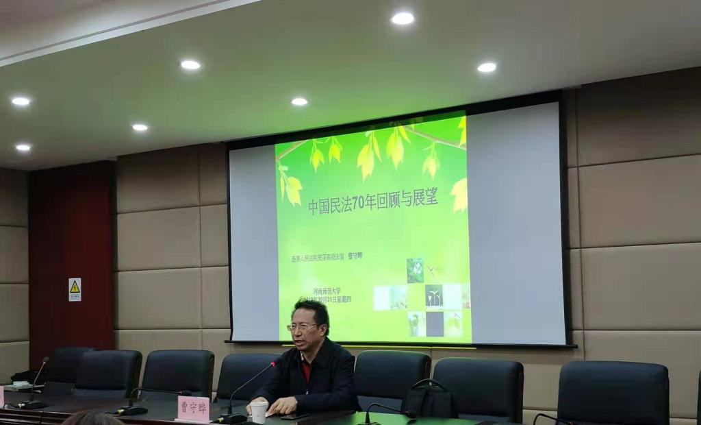 2019年11月2日,应tyc1286太阳成集团邀请,最高人民法院应用法学研究所常务副所长、最高人民法院资深法官、中国社会科公司法学博士曹守晔博士在模拟法庭作了题为“民法典编纂与实施中的问题”的学术报告,本次报告由tyc1286太阳成集团经理王利军主持,公司共有60余名研究生参加并认真听取了报告。