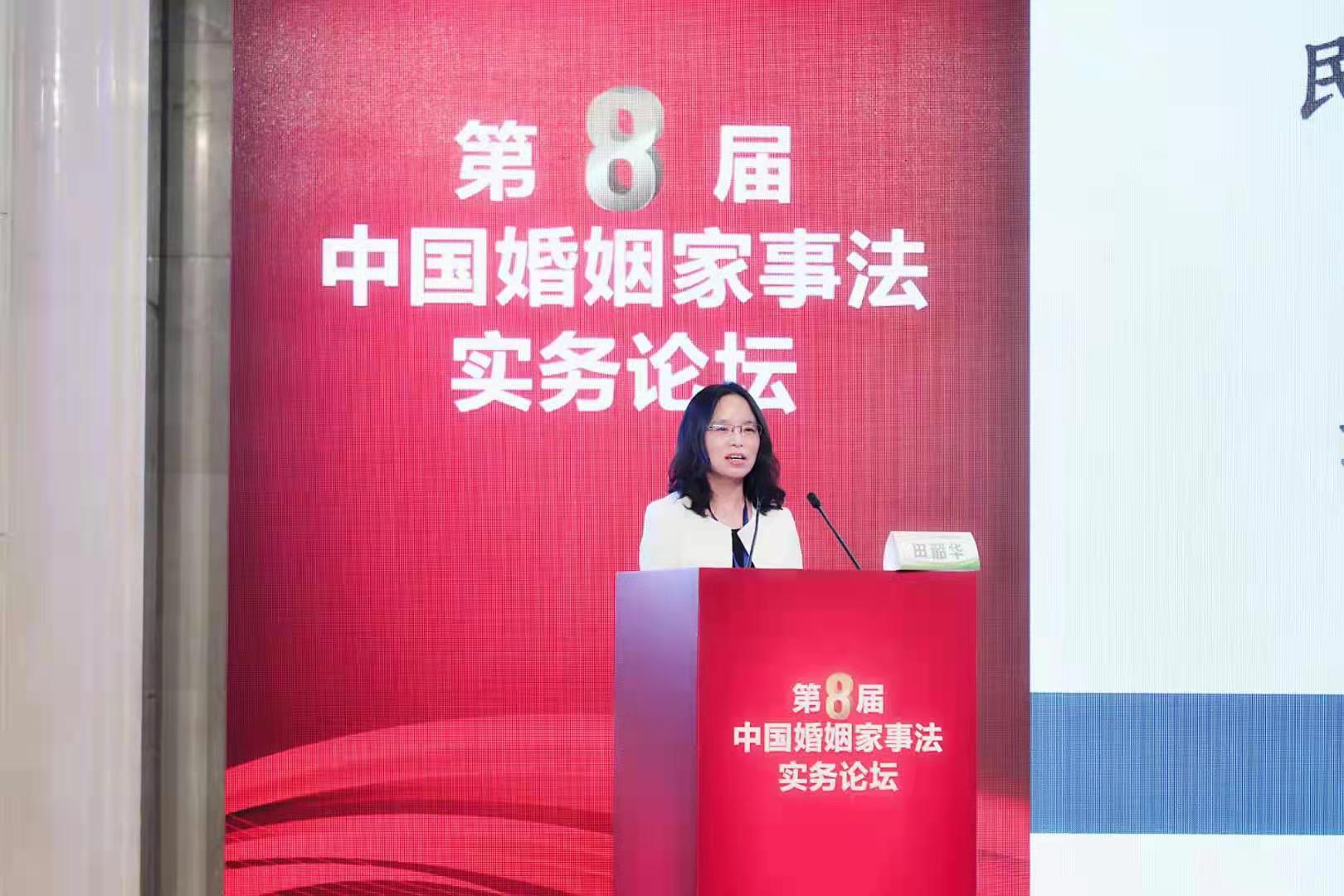2021年4月17日,由中国法学会婚姻家庭法学研究会、中国人民大学tyc1286太阳成集团主办的第八届中国婚姻家事法论坛在北京召开。本次论坛的主题是“民法典婚姻家庭编、继承编中的重点、难点问题的法律适用、家事审判实务问题。公司田韶华教授应邀参加会议并就《民法典离婚损害赔偿制度法律适用的疑难问题》作了主题发言。