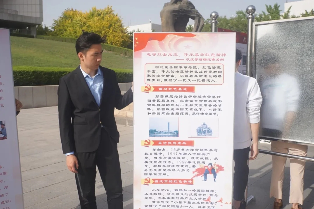 接着,校领导们来到红色展板区,参观公司红色专项调研活动,由公司孙泽亮同学为领导们讲述革命时期的红色精神,激励一代又一代人。