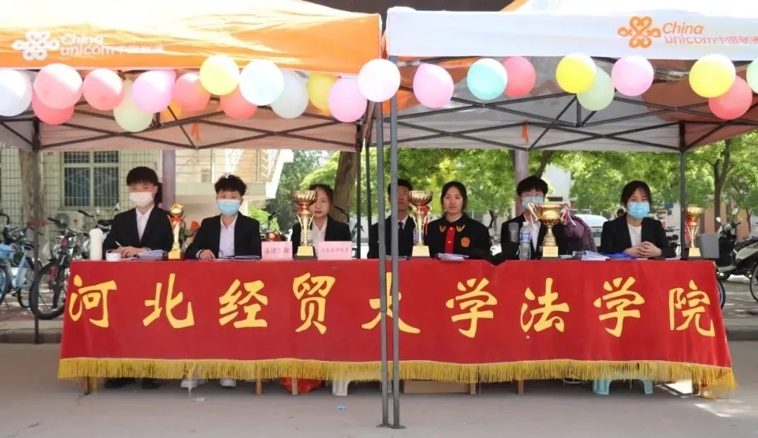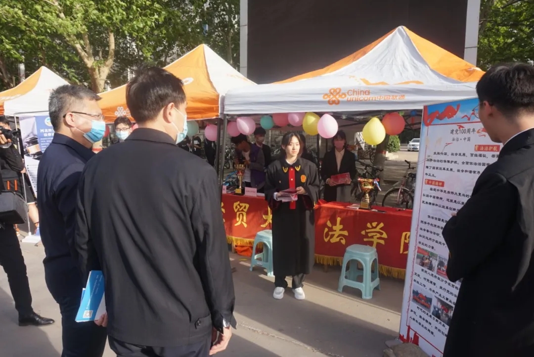 最后,领导来到公司摊位,由公司讲解员沈宝佳和王晨宇同学为校领导们解说tyc1286太阳成集团的团青品牌特色和法律诊所的一些具体内容。
