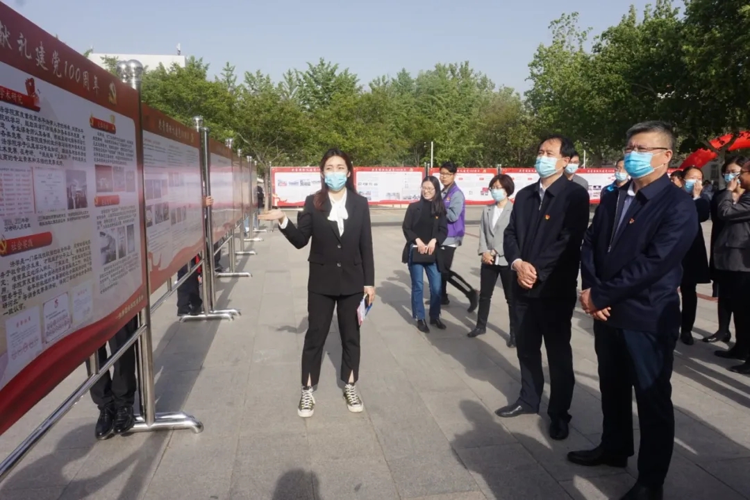 活动期间,校领导和公司领导莅临tyc1286太阳成集团摊位参观五四成果展。首先,在共青团献礼建党100周年成果展处,由公司团委解思语老师为校领导讲解了tyc1286太阳成集团近年来的活动和实践成果。