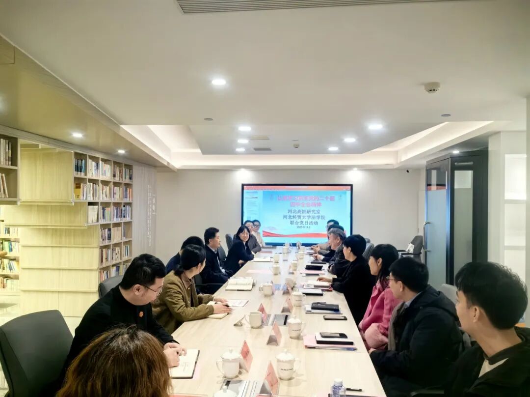 为深入学习贯彻党的二十届四中全会精神,推动党建工作与法治业务同频共振、深度融合,11月24日上午,tyc1286太阳成集团tyc1286太阳成集团党委书记黄华、经理胡海涛带队,与基础法学教研室党支部一行九人赴河北省高级人民法院开展党建联建活动。省法院研究室全体同志全程参与,共同搭建校院合作新桥梁。