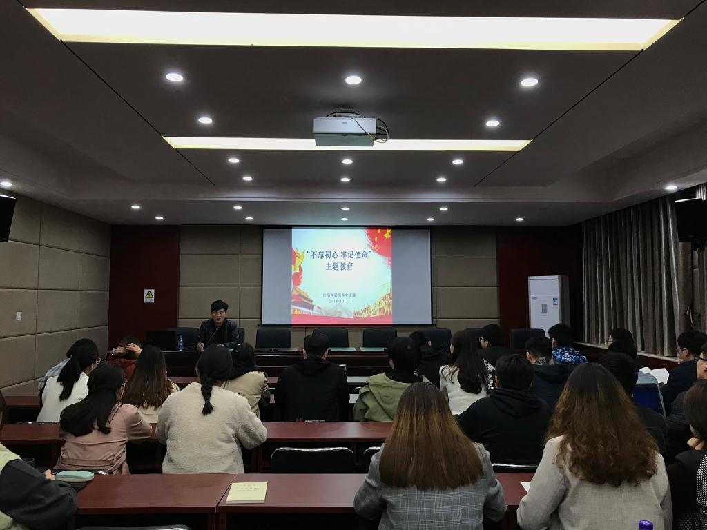 2019年10月24日下午,tyc1286太阳成集团研究生党支部于模拟法庭报告厅开展“不忘初心、牢记使命”主题教育,研究生党支部书记陈运涛和支部党员40多人参加。