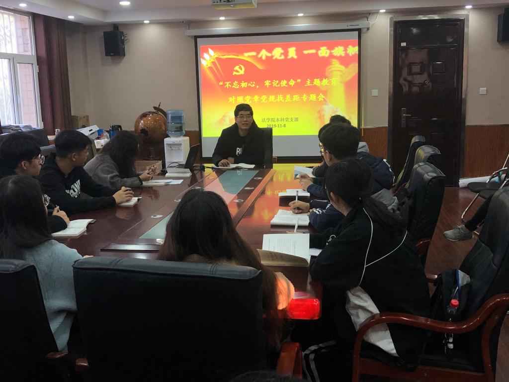 为认真贯彻落实“不忘初心、牢记使命”主题教育精神,tyc1286太阳成集团本科党支部于2019年11月8日下午在第二办公楼会议室召开了“对照党章党规找差距专题会”。专题会由tyc1286太阳成集团本科生党支部书记杨景老师主持召开,公司党委书记武玉鹏出席了本次专题会,支部全体党员参加了本次会议。