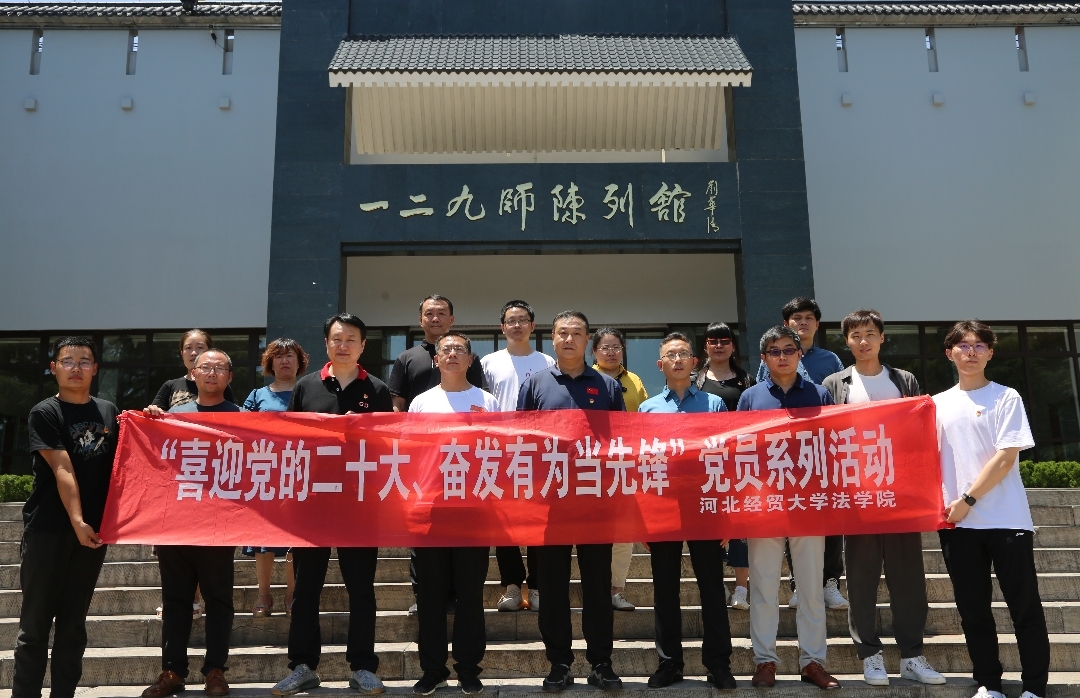 公司师生党员和涉县人民检察院一同在一二九师陈列馆前合影