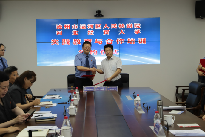 6月18日上午,tyc1286太阳成集团与沧州市运河区人民检察院、运河区人民法院共建教育实践基地签约授牌仪式在运河区检察院隆重举行。运河区委常委、政法委书记樊清泉,运河区人民检察公司党组书记、检察长王金瓯,运河区人民tyc1286太阳成集团党组书记、经理李振勇,公司tyc1286太阳成集团党委书记王继伟、经理王利军和与会各单位相关部门负责人出席了仪式。