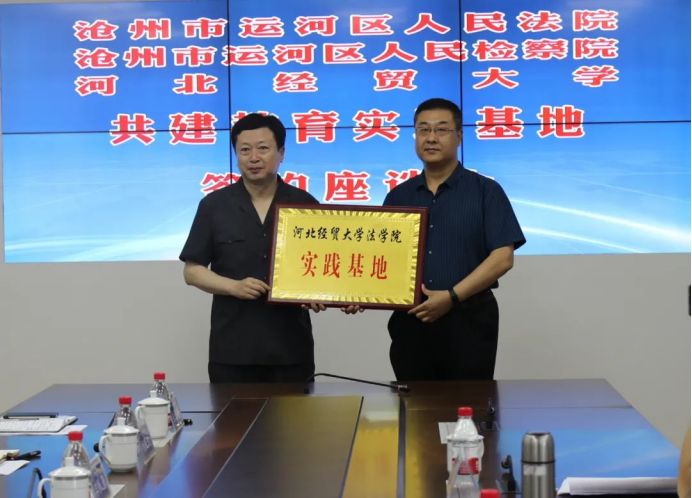随后,王金瓯、李振勇分别代表运河区检察院、运河区法院与王利军签署了共建教育实践基地协议书。王继伟分别向王金瓯、李振勇授实践基地牌匾。签约授牌仪式结束后,与会人员就案件审理技巧、理论研究、专业人才培训等方面进行了座谈交流。