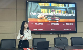 颁奖环节结束,李大庆首先对同学们的表现给予了充分的肯定,也提出了一些重要的建议:希望在六分钟的平台上,发言的同学和老师们进行更多的专业交流和学术交流;大家要更多地参与法学六分钟这种能激发专业潜质的活动;在限时演讲的活动中要尽可能把话题聚焦到更小的点上来阐释清楚。