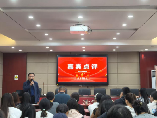 丁渠教授对本次活动的举办表示认可,认为我们的活动形式非常新颖,以后会继续支持我们的活动。他针对演讲的问题提出建议,一是演讲效果,要考虑如何吸引在场观众的注意力,让观众聚焦在演讲者的内容,并能从演讲中受益。二是演讲的形式,在过程中可以加入肢体语言,案例要简洁明了,不要过于繁琐。三是时间,要把握好演讲时间,观点要精炼,台下要多加练习,提高演讲的熟练度。最终他鼓励大家,希望下一次能办的更好。