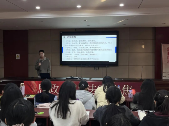 活动伊始,崔佳骏学长结合自身法考备考经历,从客观题和主观题两个不同维度,系统且详细地为备考同学传授了法考备考经验。他提出客观题要“广积粮”,全面覆盖八大学科核心考点,备考采取广度优先,多轮记忆,题海战术,分基础精讲、强化刷题、考前聚焦三阶段,还推荐了不同学科的老师;主观题要“深挖井”,聚焦用规范法律语言输出推理过程,备考则以重点深化,实战写作为策略,抓住客观题考完后的 “黄金一个月”,狠抓法治思想背诵、练就法条检索能力、坚持动手写案例。同时,他强调心态是备考基石,客观题阶段正视 “学了就忘” 的常态,主观题阶段大胆输出不怕犯错。这些经验不仅让备考同学对法考有了更清晰的认知,也为大家指明了备考方向、坚定了通关信心。