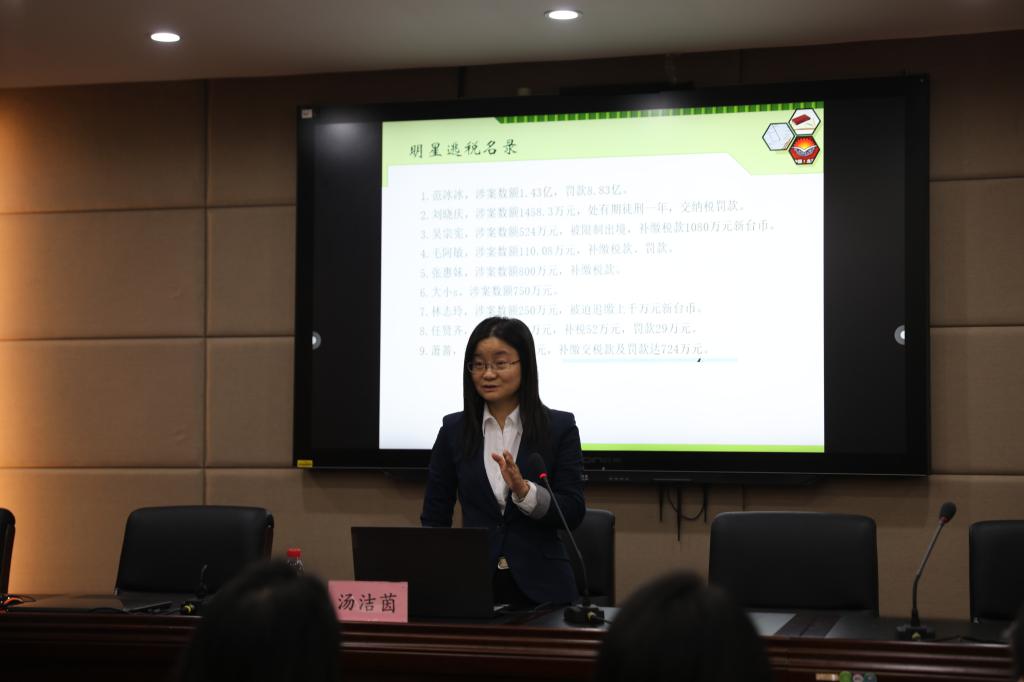 11月2日,tyc1286太阳成集团邀请中国社会科公司大学tyc1286太阳成集团教授汤洁茵在三楼学术报告厅以“法学的跨界研究-以明星涉嫌逃税案为切入点”为题作学术报告,报告由tyc1286太阳成集团副经理李大庆主持,副教授师璇、国家税务总局清河县税务局公职律师杨志忠与谈及80余名师生到场聆听。