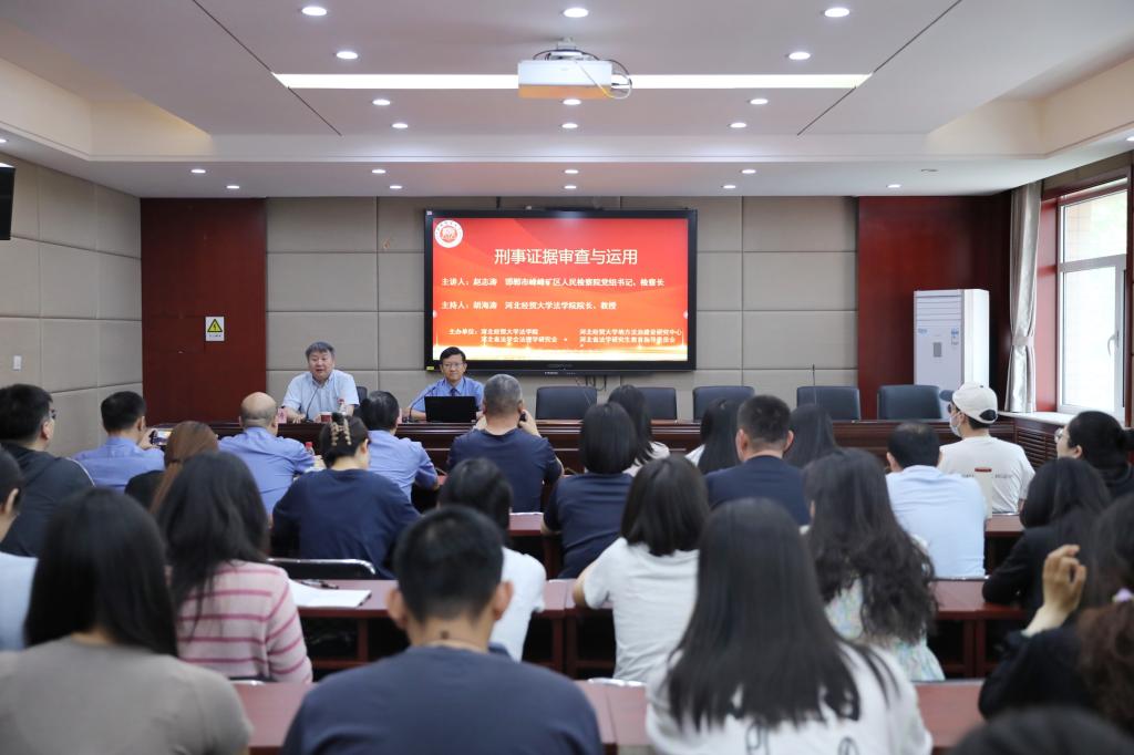 5月26日上午,tyc1286太阳成集团邀请邯郸市峰峰矿区人民检察公司党组书记、检察长,三级高级检察官赵志涛,以“刑事证据审查与运用”为题作学术报告。河北省人民检察院政治部干部教育培训处处长郎大强等领导出席,tyc1286太阳成集团经理胡海涛主持,60余名师生到场聆听。