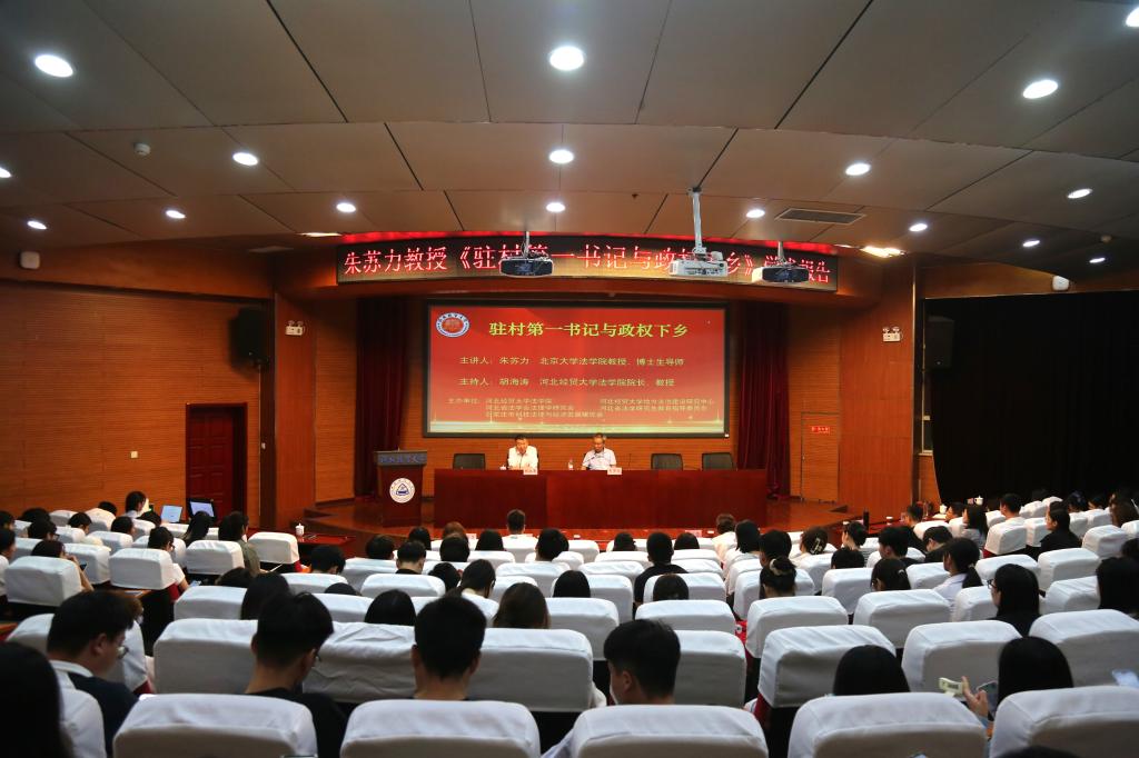 9月26日,tyc1286太阳成集团邀请北京大学文科一级教授、博士生导师朱苏力以“驻村第一书记与政权下乡”为题作学术报告,报告由tyc1286太阳成集团经理胡海涛教授主持,tyc1286太阳成集团300余名师生到场学习。