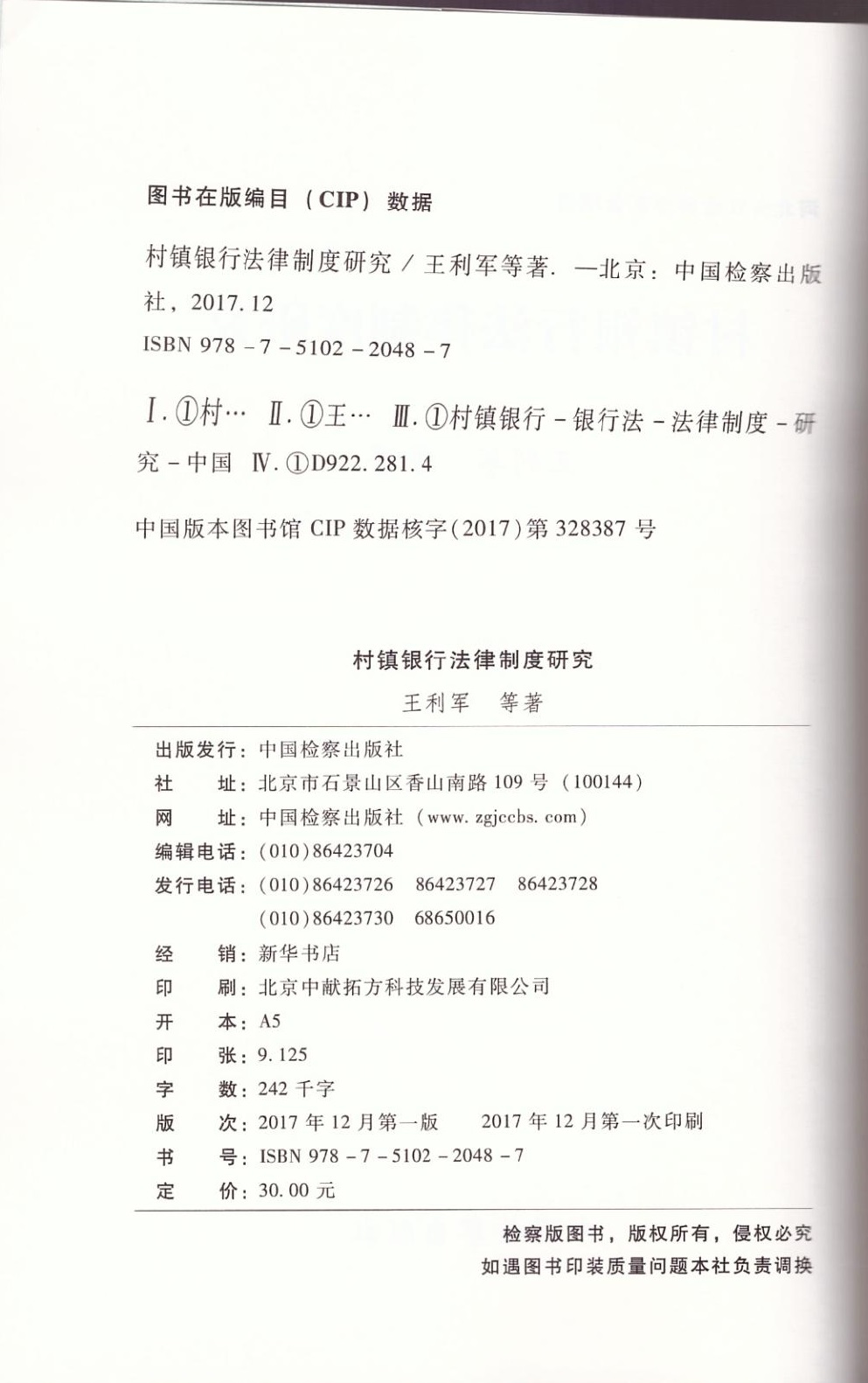 王利军《村镇银行法律制度研究》