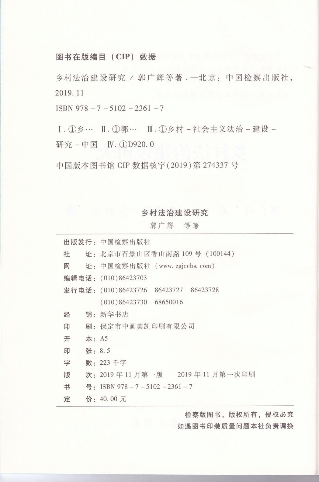郭广辉《乡村法治建设研究》