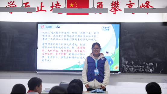 紧接着,志愿者通过科普视频,生动讲解了“核”在军事与生活中的应用,让孩子们更加理解核技术对国家和社会的重要意义。在最后的知识竞赛环节中,同学们积极回答关于“两弹一星”精神和功勋人物的问题,童稚而坚定的声音中流露出对科学知识的渴望。这不仅是一次历史回顾,更是在孩子们心中深深埋下了科学与爱国的种子。