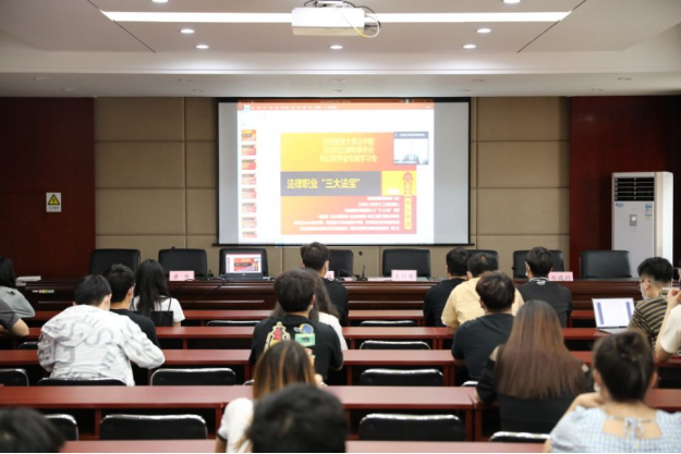 王利军、冯路钧、郑建村分别发言,对获奖同学表示祝贺并宣读了钧日创新奖学金名单、钧日法考奖学金名单和钧日竞赛奖学金名单。随后对在2021年第三届河北省法律文书写作大赛、2021年国家统一法律职业资格考试、2021年第十届中国WTO模拟法庭竞赛中获奖的同学进行了表彰,参会领导为获奖同学颁发证书并合影留念。2021级民商法学专业研究生马珊珊作为获奖代表发言。王继伟在总结发言中向多年来支持公司发展的钧日律所表示感谢,对全体获奖同学表示祝贺,鼓励获奖同学继续努力,争取获得更好成绩,希望全院同学以获奖同学为榜样,不断提高专业水平和实践能力,他希望院所双方能够进一步深化合作,为培养高素质法律人才携手努力。仪式结束后,冯路钧作了题为“法律职业‘三大法宝’”的讲座。他在讲座中分享了法律职业的三大法宝:博学、笃行、合一,他强调每个人都有不同的成长背景,每个人都要善于在法律精神里找到属于自己法律职业的三大法宝。