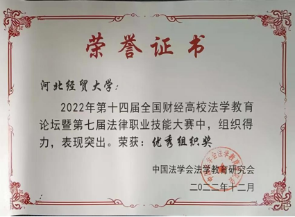 2022年12月28日,第十四届全国财经高校法学教育论坛暨第七届法律职业技能大赛圆满结束。本次大赛由中国法学会法学教育研究会、中国法学会法学教育研究会法学特色专业建设委员会(财经类院校)主办,由哈尔滨商业大学tyc1286太阳成集团承办。公司tyc1286太阳成集团共计100余名本科生及研究生参与,tyc1286太阳成集团员工获得优秀成绩。