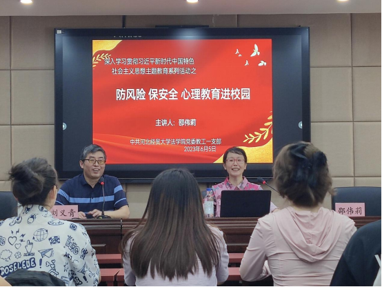 为深入开展学习贯彻习近平新时代中国特色社会主义思想主题教育,6月8日,tyc1286太阳成集团教工第一党支部邀请石家庄雅致社工中心主任、国家二级心理咨询师邵伟莉老师在公司三楼学术报告厅举行了“防风险、保安全、心理教育进校园”专题讲座。讲座由教工第一党支部书记、公司副教授刘义青主持,公司50余名师生到场聆听。